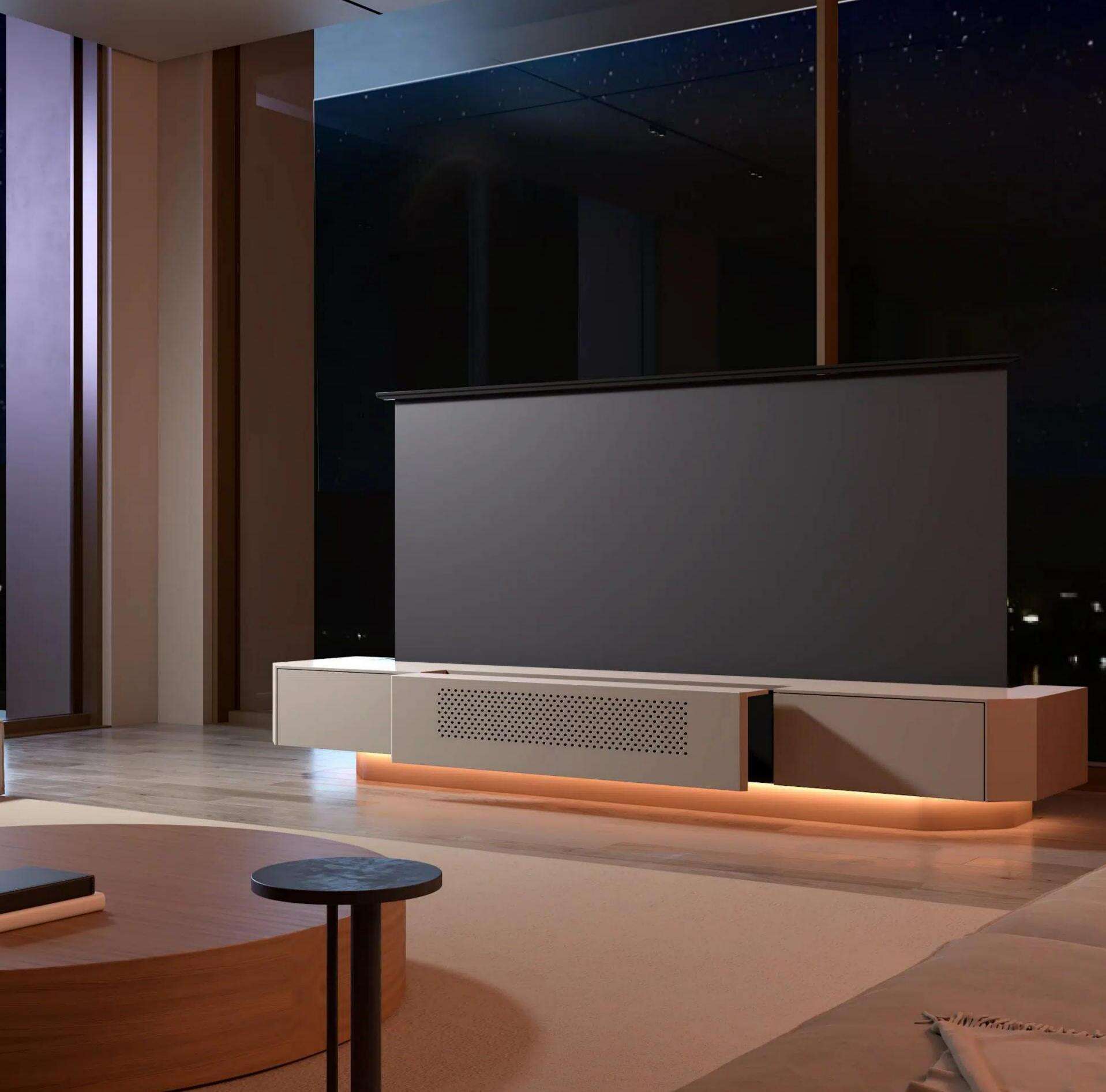 الاقتران الاختياري مع شاشة ترتفع من الأرض لإعداد كامل